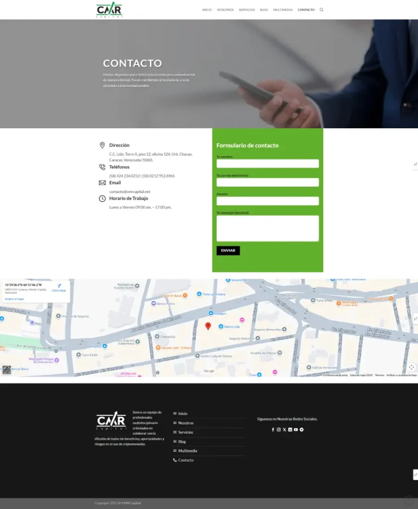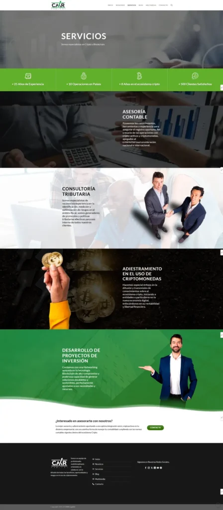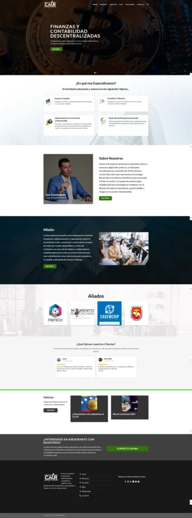 Sitio web realizado en WordPress a empresa venezolana que presta servicios de Asesoría Contable, Asesoría Tributaria, y en materia de Criptomonedas.