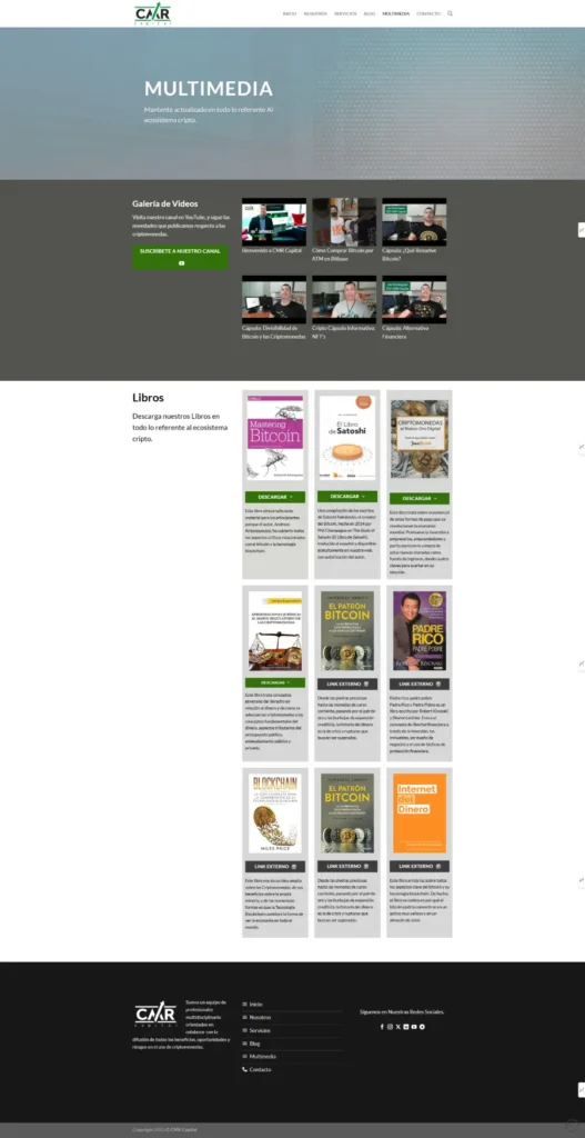 Esta web cuenta con banner en vídeo en página principal, así como dos tipos de header (fondo transparente en el Home y con fondo blanco en el resto de las páginas). Tiene blog, una mini galería de vídeos de su canal de YouTube, y página de contacto, entre otras.