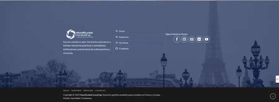 Proyecto para Hexa Études Consulting, con sede en Lyon, Francia, empresa que busca ser el puente que conecta a los estudiantes de Latinoamérica con oportunidades universitarias, programas profesionales y cursos de francés en Francia.